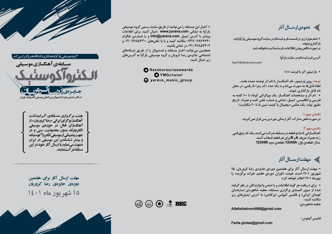 همانند سال گذشته، امسال نیز دانشکده موسیقی دانشگاه هنر در برگزاری «فستیوال بینالمللی موسیقی الکترونیک تهران» و «جایزه آهنگسازی رضا کروریان» با «گروه موسیقی یارآوا» همکاری خواهد داشت